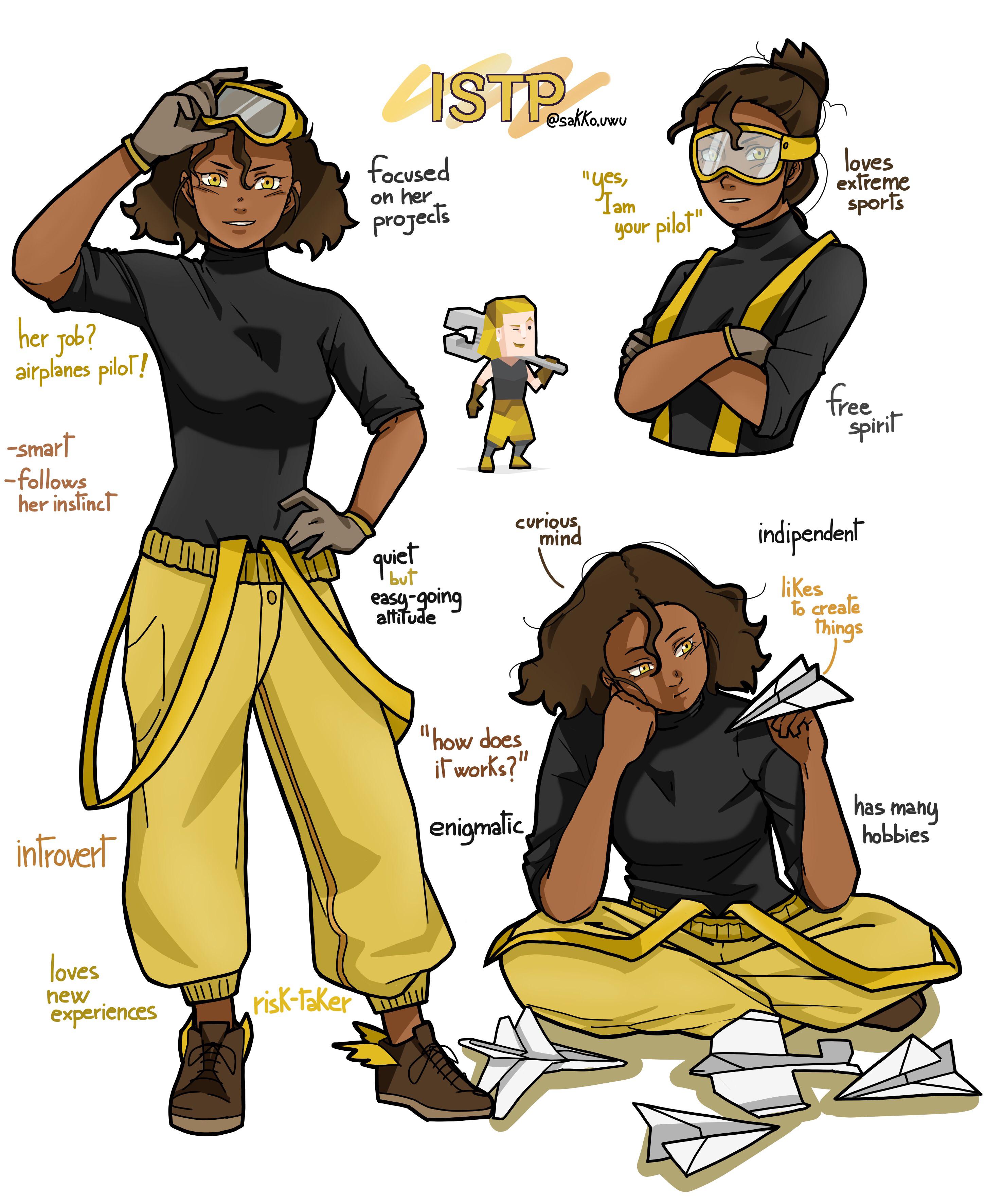 - 장인 ISTP-A/ ISTP-T : 용감하며 또한 실리적인 성격, 대개 종류의 도구를 자유자재로 취급하는 장인