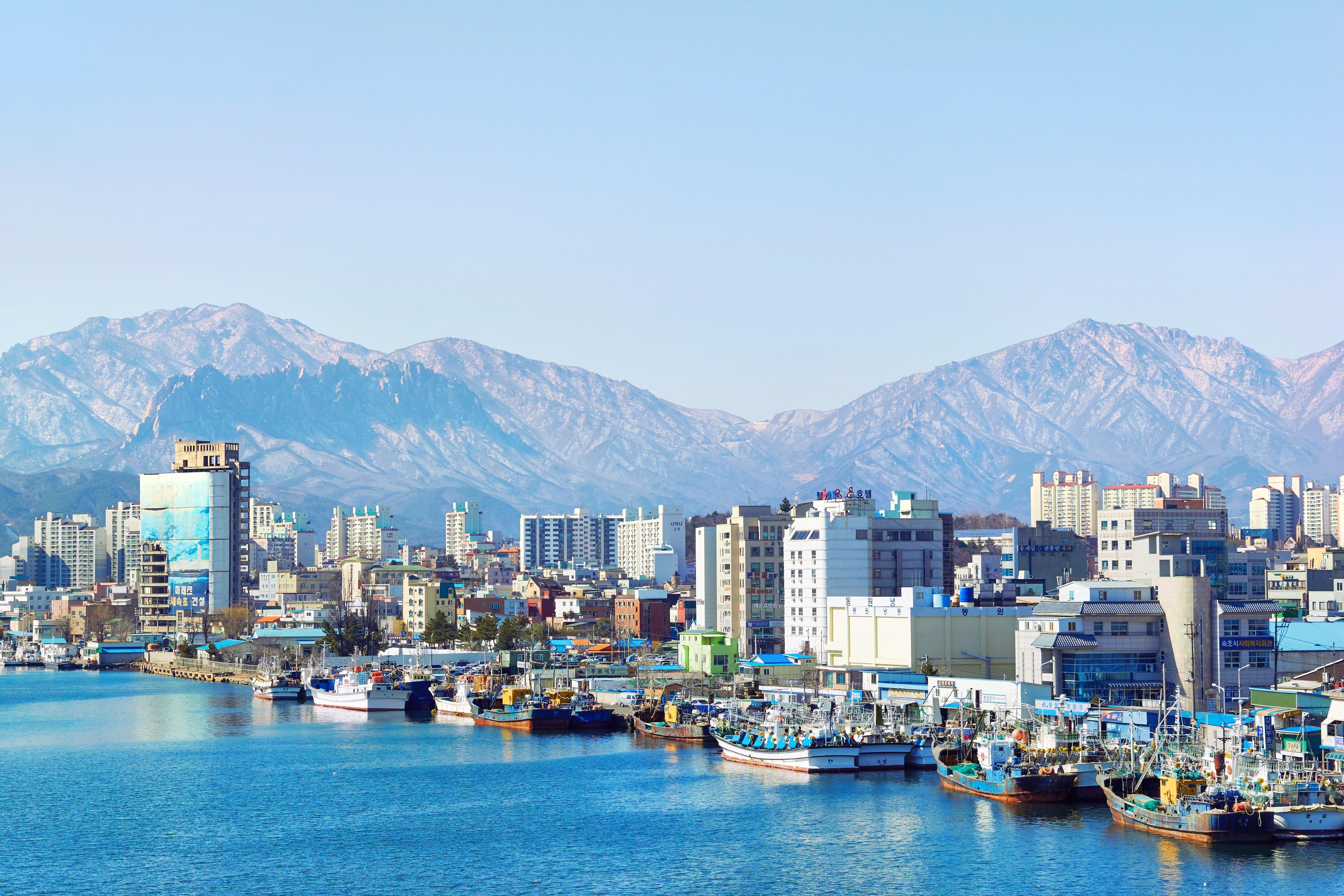 속초는 한국을 표상하는 관광지 중 한 종류로 관광산업이 발달한 곳이지요. 관광도시로서 식품점과 숙박시설이 많고 근일 동해고속도로가 개통되면서 관광객이 크게 불어나고 있습니다. 북쪽으로 고성군 토성면, 서쪽으로 인제군 북면, 남쪽으로 양양군 강현면, 동쪽으로 동해와 접해 있고, 인구는 약 82,000여 명으로 강원도에서 5번째로 많고 인구 밀도는 도내 1위이지요.