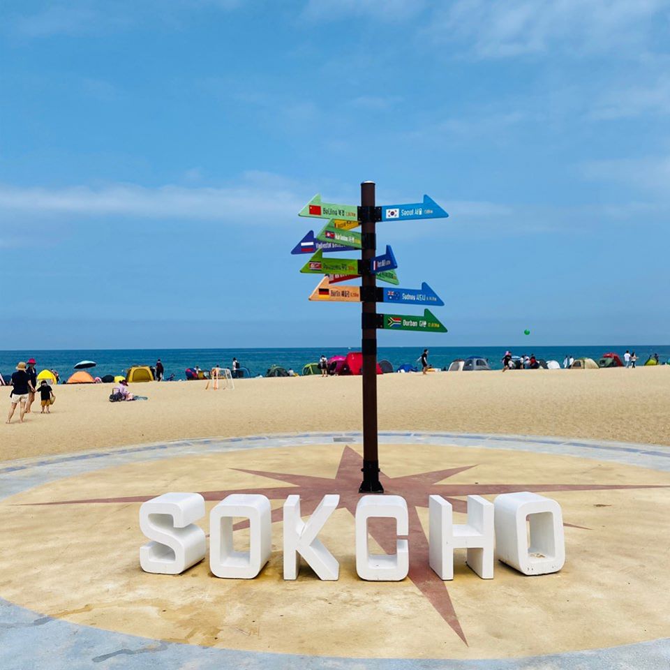 속초해변은 사시사철 관광지로 속초임을 알수 있는 시원한 바다를 배경으로 청량함이 뿜어져 나오는 삐뚤어진 사각 프레임,강렬한 핫핑크와 파란색 바다가 대비되는 테트라 포트, 보기만해도 사랑이 넘치는 사랑나무등 갖가지 포토죤이 제작되어있다고 합니다.