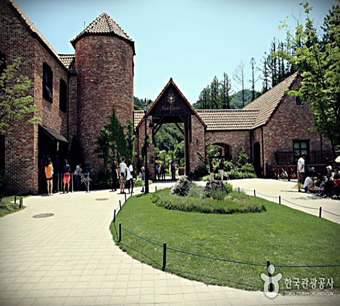 신사와 아가씨라는 드라마에 지현우 집이 바로 제이드가든에 있고요. 그 와 함께 또 사랑비와 그 겨울 바람이 분다 등 저명한 드라마의 촬영지이기도 한데 숲 속에서 만나는 작은 유럽이라고 부르는 테마로 꾸민 이국적인 수목원으로 약 16만 3500㎡ 부지에 자연 지형을할 수 있는 원형대로 유지한 채로 24개의 테마 정원을 조성했답니다.