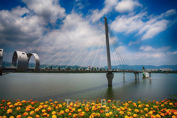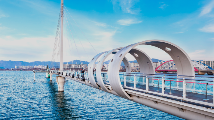춘천 가볼만한곳 소양강 스카이워크입니다. 춘천시 영서로에 자리잡은 소양강 스카이워크는 총 길이 174m로 국내 최장 스카이워크로 투명한 유리로 된 구간의 길이는 156m입니다. 춘천에 있는 소양2교와 소양강 처녀상 옆에 위치해 있으며, 소양강 스카이워크 끝자락에는 투명한 유리바닥을 구심점으로 원형 광장이 구성되어 있고요.