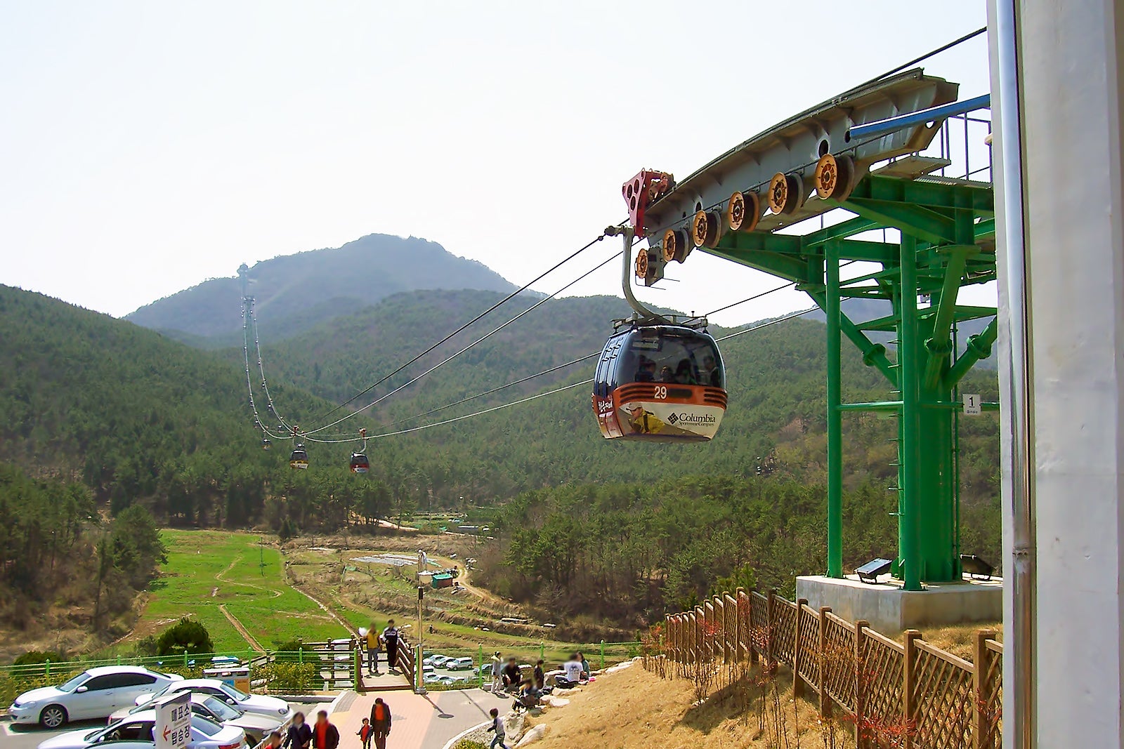 우리나라 100대 명산으로 지정된 미륵산의 해발 461m 8부 능선에 위치하고 있는 케이블카입니다. 관광용으로는 1,975m로서 국내 최장의 길이를 뽐내고 있다고 합니다. 국내 최초 바이 곤돌라 자동순환식 8인승 48기를 설치하였고 2008년에 개장되었요.