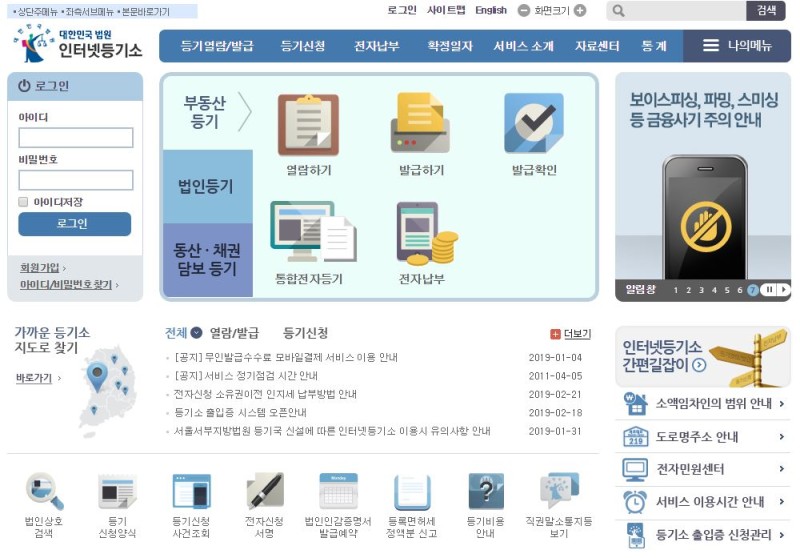 지금은 부동산에 대한 등기부등본을 열람하고 발급받기 위해 해당 물건이 있는 지역 등기소를 직접 방문하지 않아도 대법원 인터넷등기소에서 간단한 절차만 거치면 등기열람과 발급이 가능해졌습니다. 또한 인터넷등기소에서 법인인감증명서도 발급이 가능하기 때문에 지역 등기소에 직접 방문해야 하는 번거로움이 넉넉하게 줄었습니다.