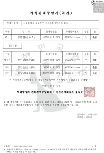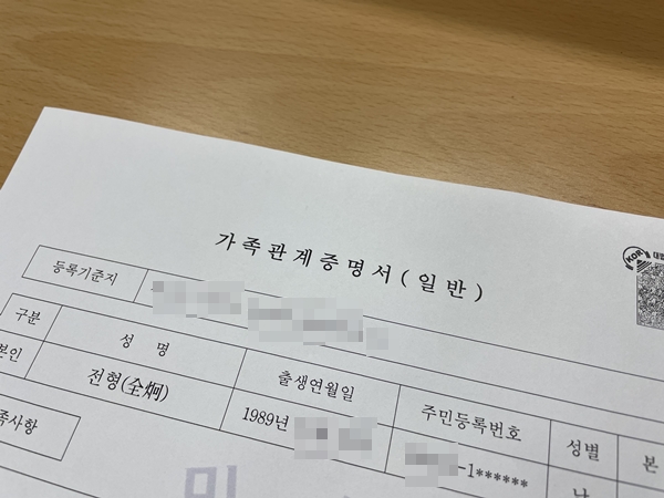 가족관계증명서는 개인의 신분관계를 증명하는 용도라고 보시면 되는데, 발급대상자 기준으로 직계 3대에 대한 이력이 적혀 있는 서류이라고요. 본인이 직접 방문하여 발급받을 경우 부모와 본인 그리고 자녀가 있을 경우 자녀까지 표기가 됩니다. 형제와 자매는 표기되지 않는 것이 특징이라고요.